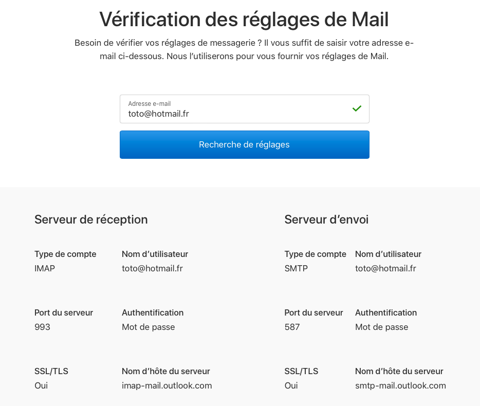 Vous pouvez trouver vos réglages de serveur ici : Mail – Assistance Apple officielle
