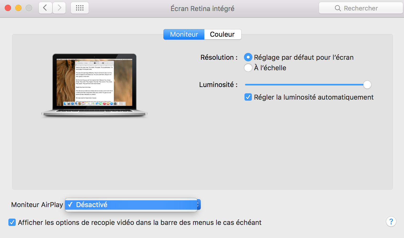 J'aimerai pouvoir recopier l'écran de mon mac pro sur ma smart tv LG, mais Airplay est désactivé, et impossible de l'activer. Par contre je n'ai pas de souci avec mon iphone, merci de l'aide apportée