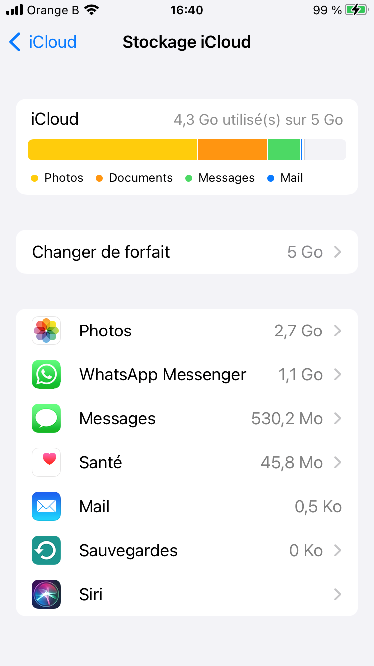 j'ai 4.3 giga sur 5 dans mon icloud et quand je veux le sauvegarde il me dit qu'il n'y as pas assez de place
