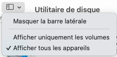 Je vous conseille de d'"afficher tous les volumes" puis de sélectionner le disque physique, ensuite "effacer".