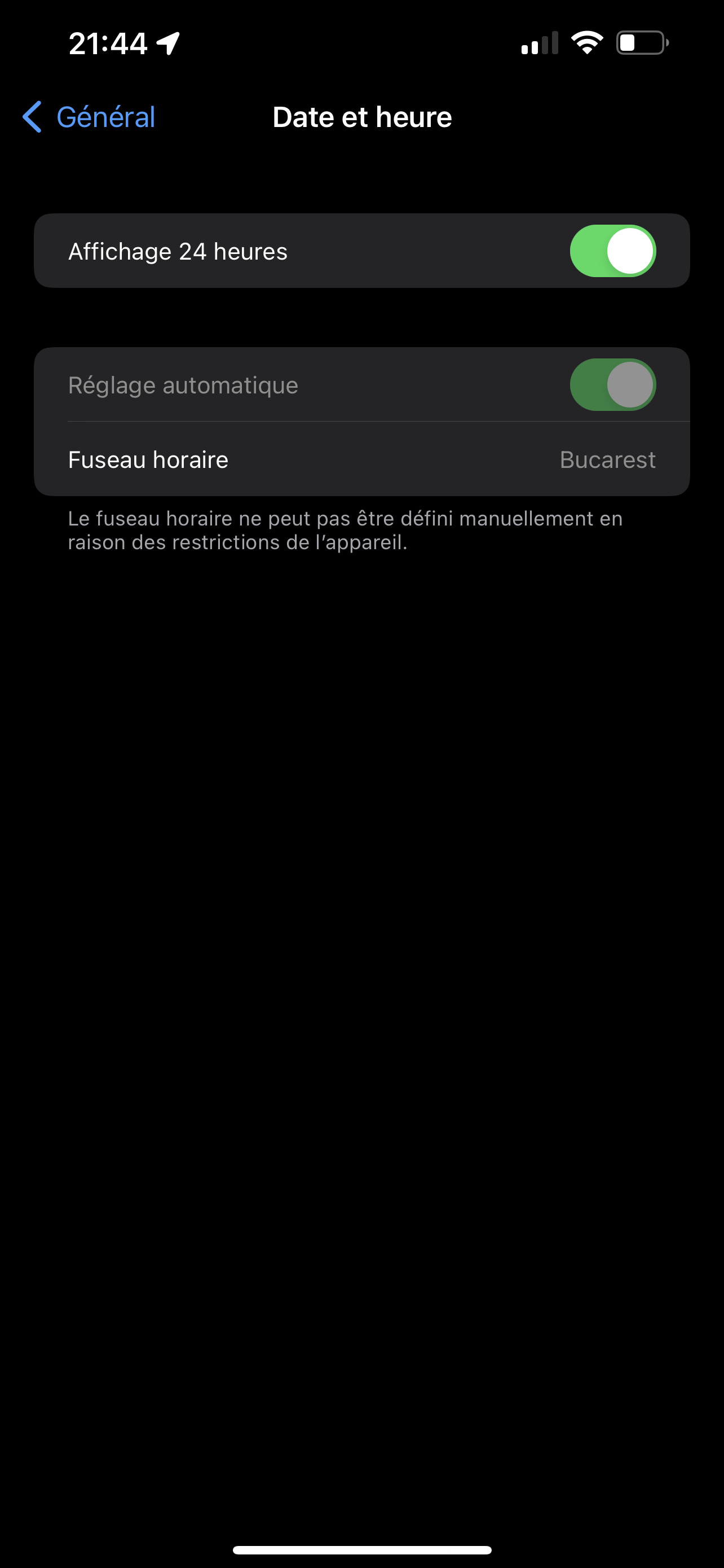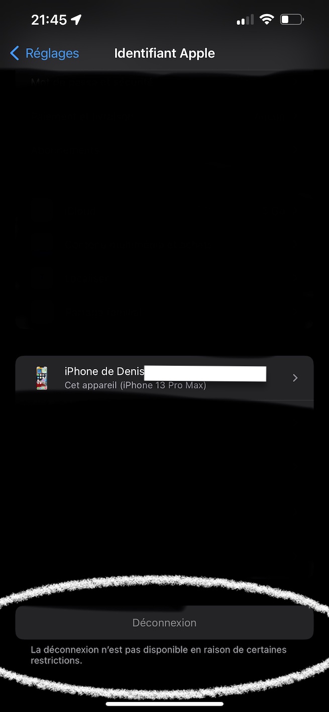 J’ai un réel problème j’ai voulu changer l’heure de mon iPhone manuellement mais ça m’indique que je ne peut pas car j’ai des restrictions même pour la déconnexion