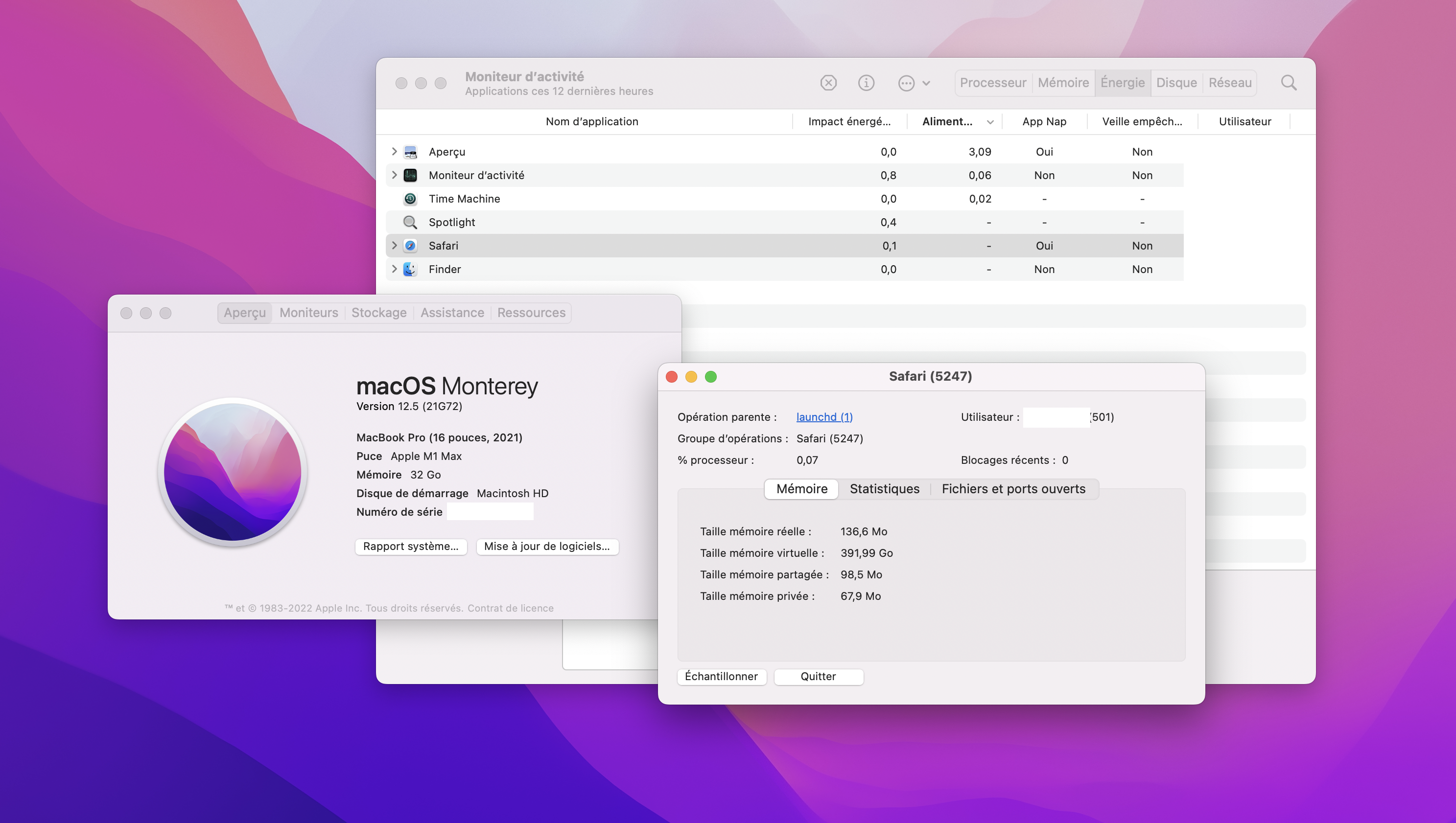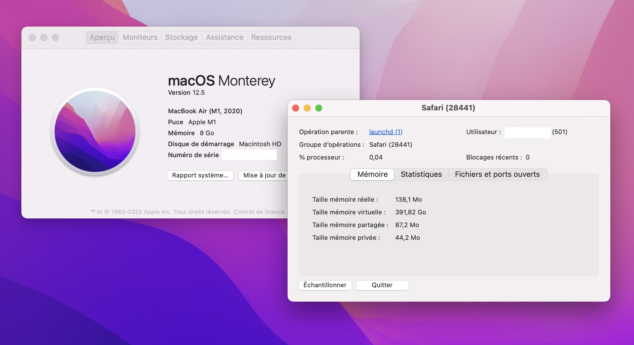 Si vous vous interrogez sur la notion de 391 Go de mémoire virtuelle, il ne faut pas vous en souciez. Cela signifie que depuis que le processus s'est lancé macOS a traiter, enregistrer, 391 Go d'espace d'adressage mémoire pour le processus Safari.