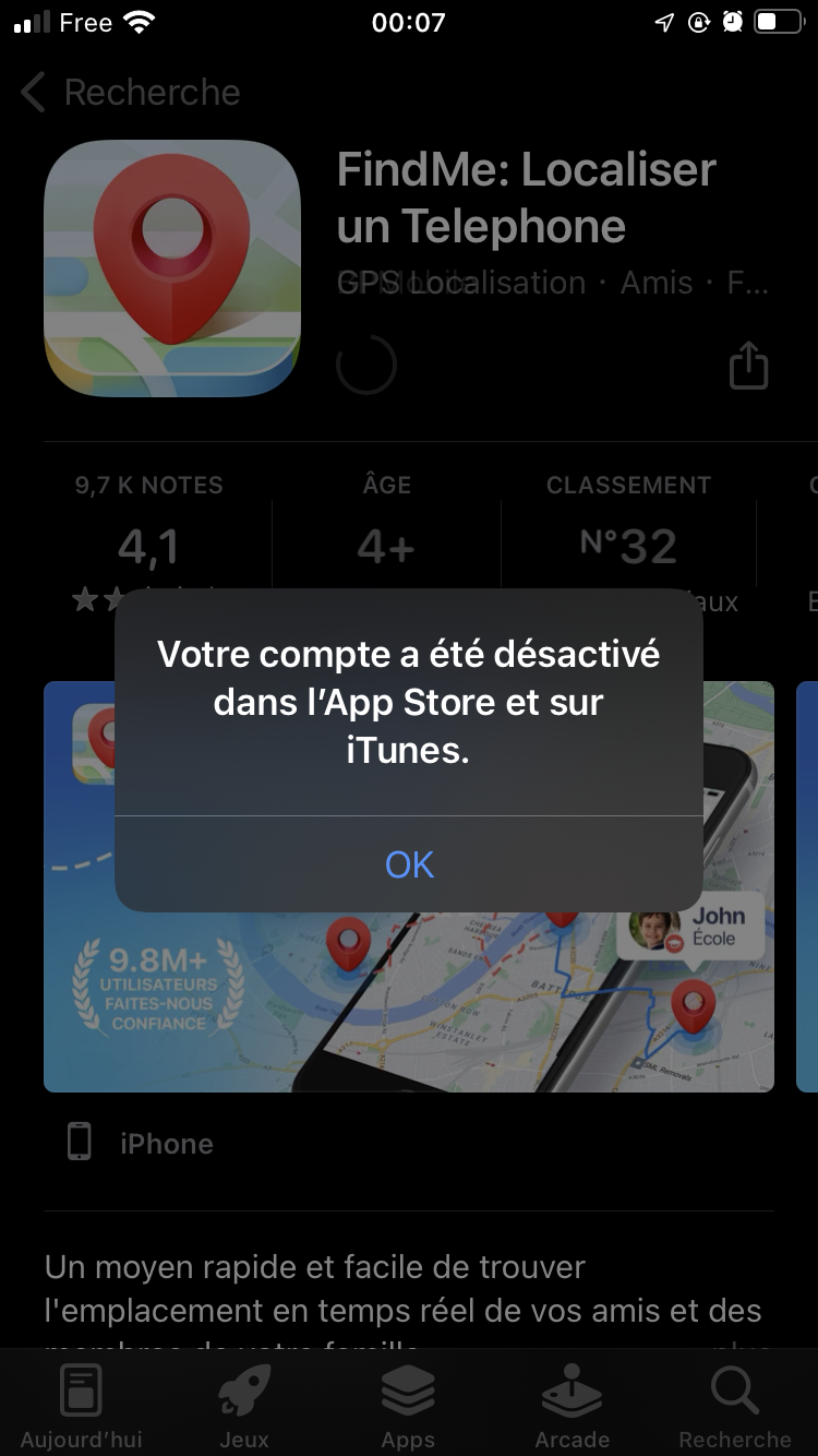Compte désactivé dans l’App Store et sur iTunes