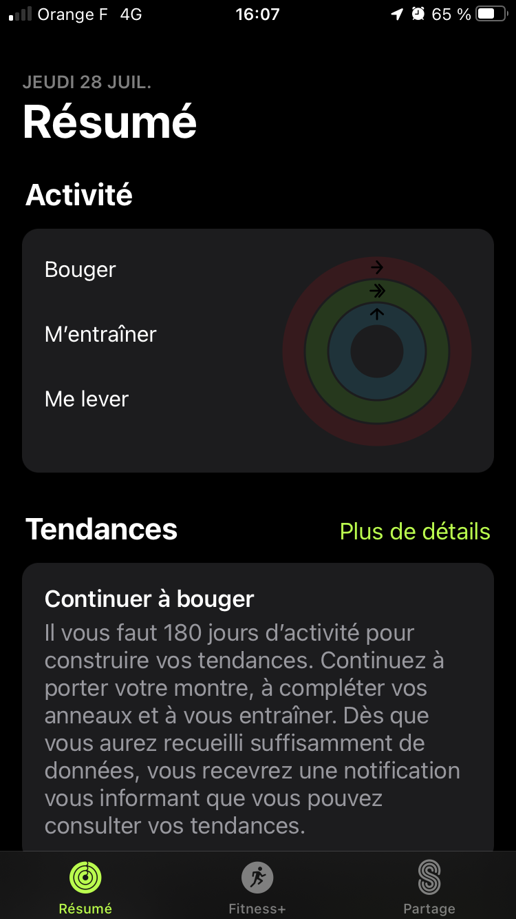 Pas de suivi des activités sur l'app Forme iPhone