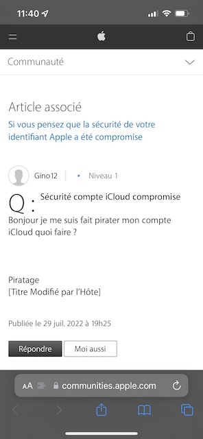 Bonjour je me suis fait pirater mon compte iCloud quoi faire ?