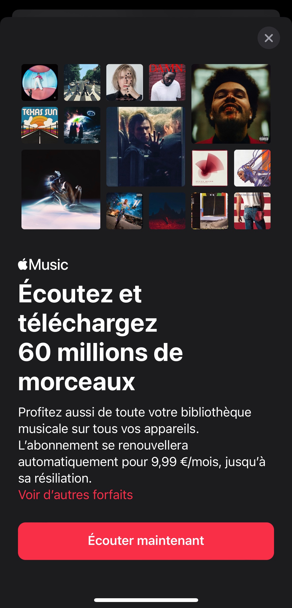Bonsoir j’ai effectué un abonnement de 9,99€ sur IPhone Musique et j’ai pas reçu l’abonnement j’ai même fais deux fois et j’ai toujours rien reçu mais j’ai été débité de 19,98€ quelle arnaque.