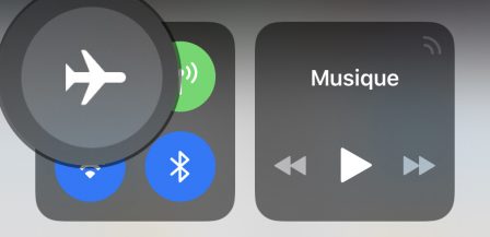 Pour cela : accéder au centre de contrôle en faisant glisser le doigt vers le bas depuis le coin supérieur droit de l’écran (iPhone X et plus récent) ou glisser vers le haut en partant du bas de l’écran sur les versions classiques d’iPhone, puis appuyer sur l’icône en forme d’avion.