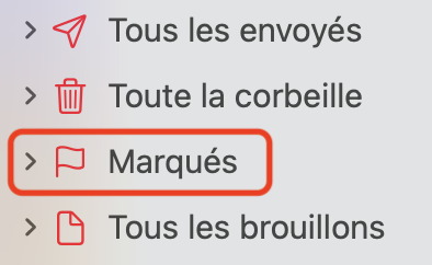 Pour retrouver les courriels tagués, c'est ici > dossier "Marqués".