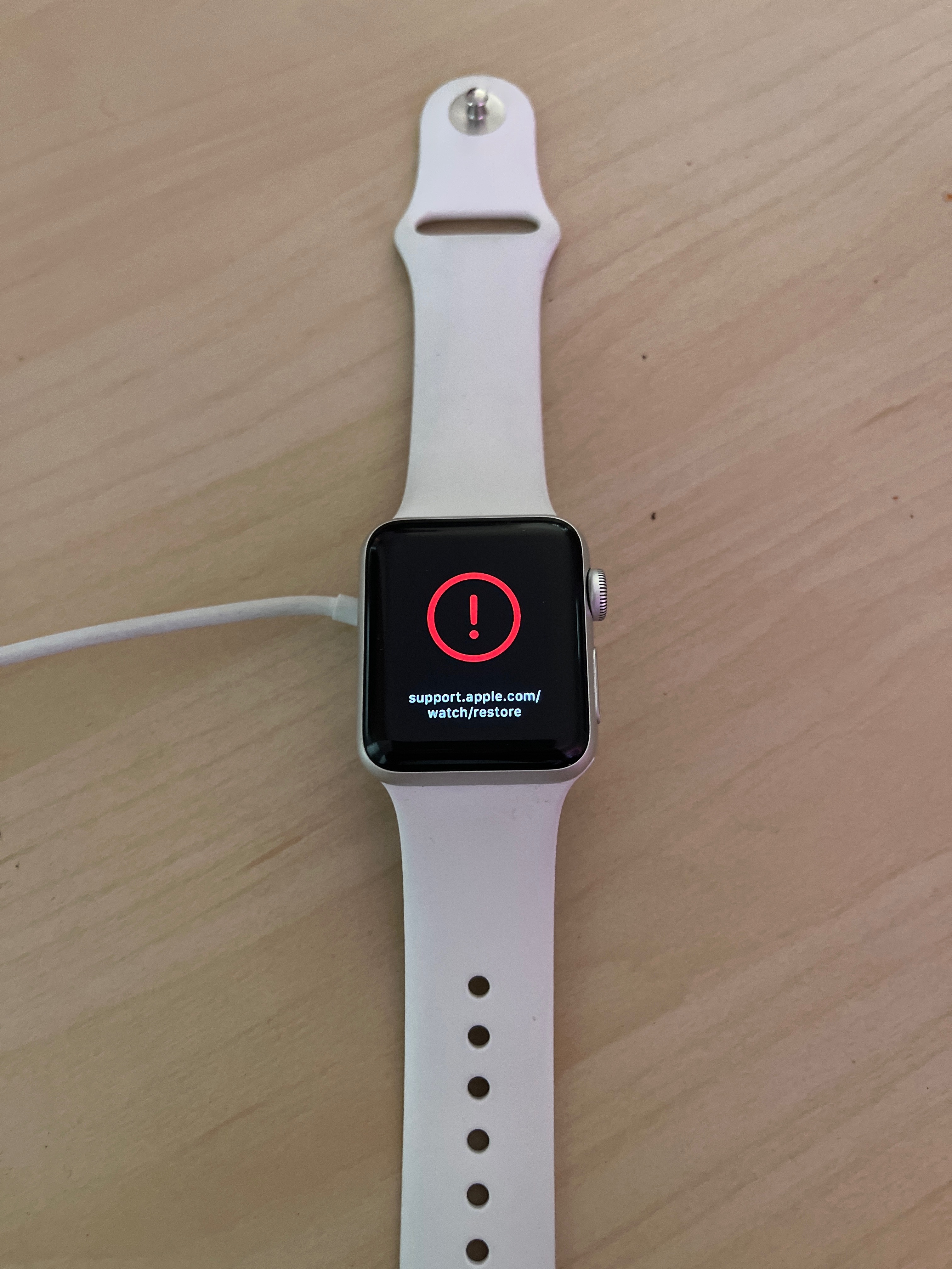 Votre Apple Watch a besoin d’une mise à jour ou d’une restauration. Je vous invite à lire cet article Votre Apple Watch affiche un iPhone et une montre ou un « ! » rouge - Assistance Apple (FR) qui pourra peut-être vous aider.
