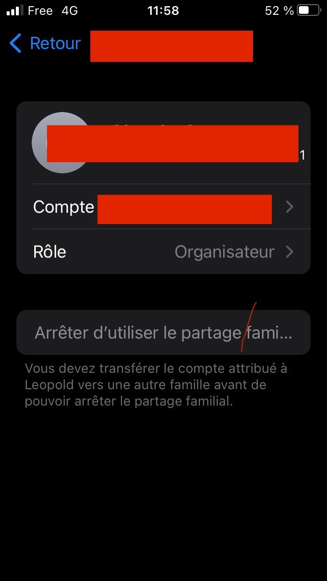 Mon bouton "arrêter d'utiliser Le partage familial" est gris et je ne peux pas l'appliquer alors que j'ai 14ans et je veux changer de partage failial pouvez vous m'aidez svp