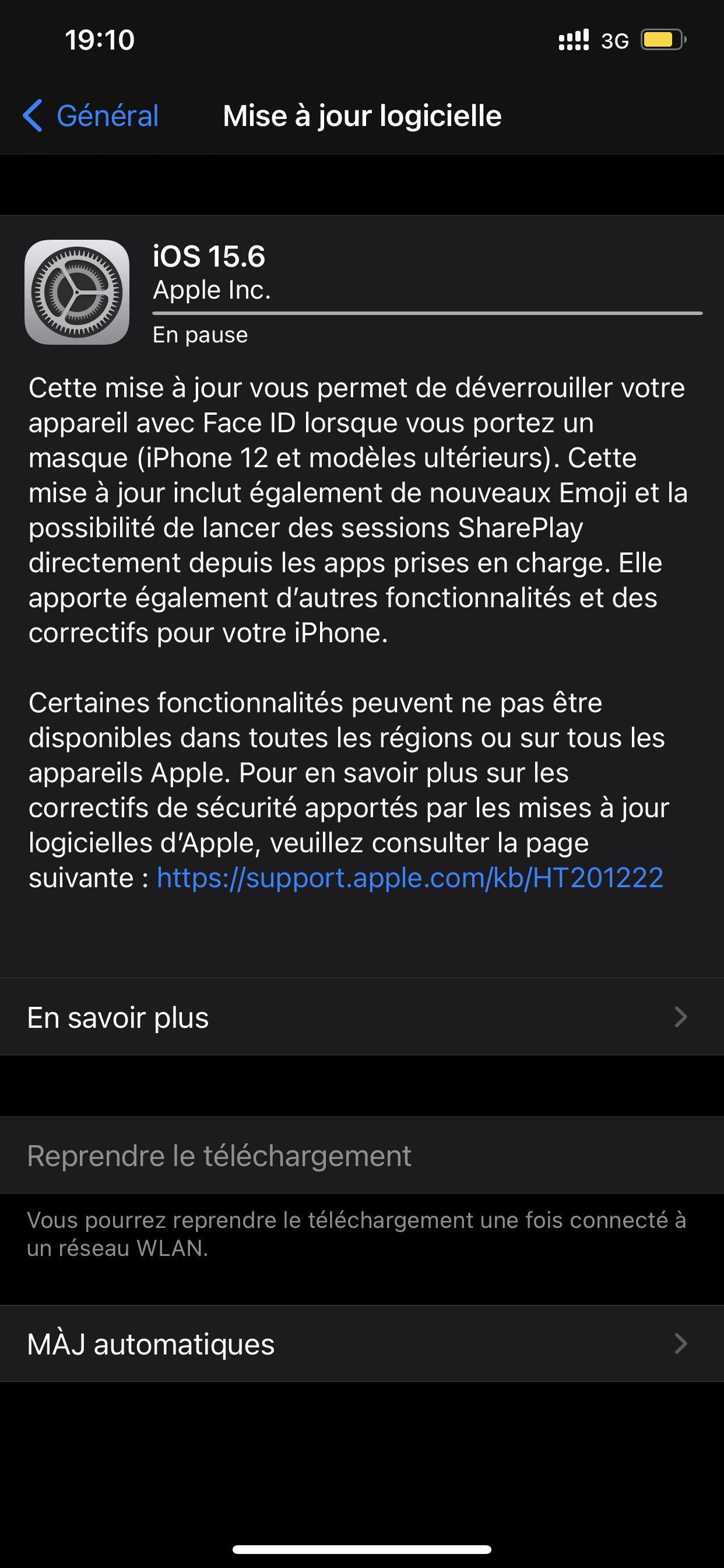 pour On ne peut pas lancer une mise à jour du logiciel via données cellulaires