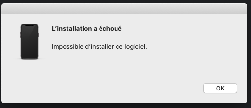 Bonjour, depuis la mise à jour de sécurité Catalina 10.15.7, la mise à jour du "logiciel iPhone" est impossible, j'ai le message suivant après avoir lancé cette mise à jour: L'installation à échoué, Impossible d'installer ce logiciel. Que faut-il faire svp ?