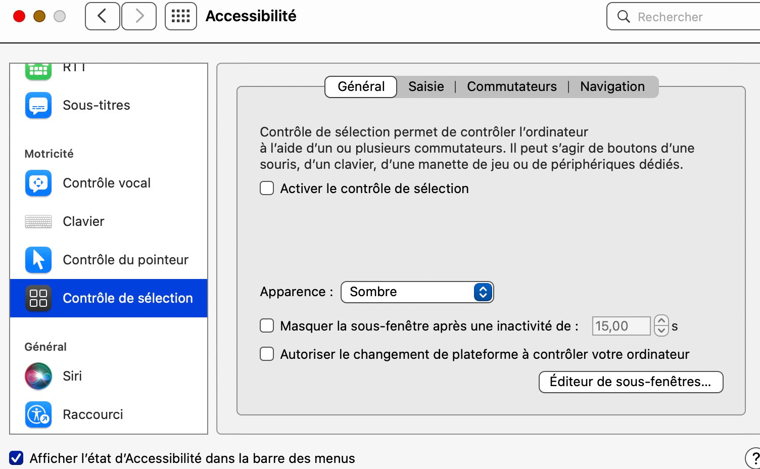 J'ai essayé de regarder du côté des préférences système, accessibilité, contrôle de sélection, mais cette fonction est pourtant désactivée.