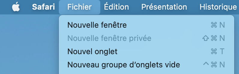 je me demandais pourquoi quand je vais sur Safari il est IMPOSSIBLE de mettre le mode de navigation privée. Sur mon mac quand j'ouvre Safari je vais dans la section Fichier mais l'action "Nouvelle fenêtre privée" est grisé, je ne peux pas cliquer dessus, le raccourcis clavier qui est lié ne fonctionne pas non plus.