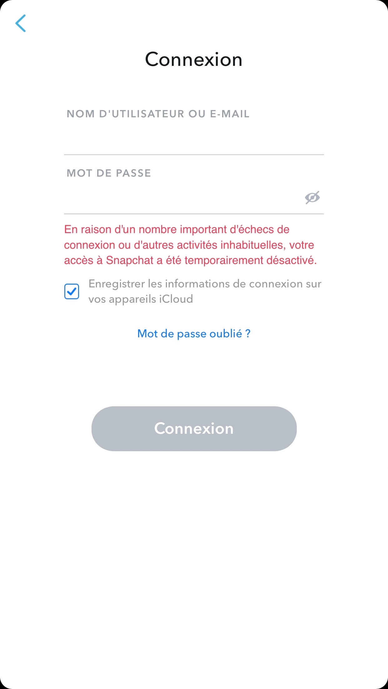 Bonsoir,j’ai un problème depuis le mercredi 3aout,lorsque je veut le connecter à n’importe quelle compte Snapchat sur mon iPhone il me dise que mon compte a étais désactiver définitivement,ce qui est impossible car sur mon ipad et sur d’autre iPhone j’arrive a me connecter sur mon compte alors je suppose que c’est un problème qui viens de l’iPhone,j’ai désinstaller plusieurs fois l’appli mis c’est toujours pareille,fais la dernière maj (iOS 15.6) et il n’y a pas de maj Snapchat donc j’espère infiniment que ce problème pourra être régler merci.
