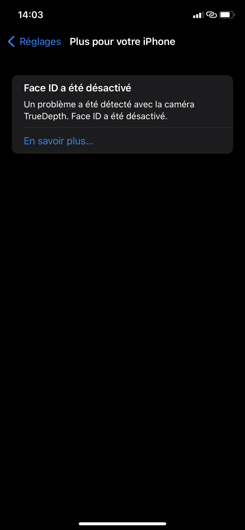 Je vous invite à consulter cette page Si une alerte indique que Face ID a été désactivé sur votre iPhone ou iPad Pro - Assistance Apple (CH)