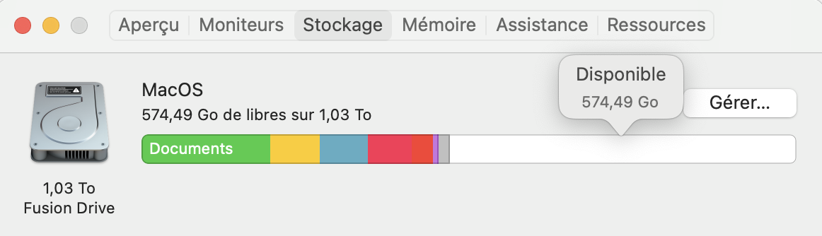 quand tu regardes la capacité restante de ton Mac, ça donne quoi ici ?