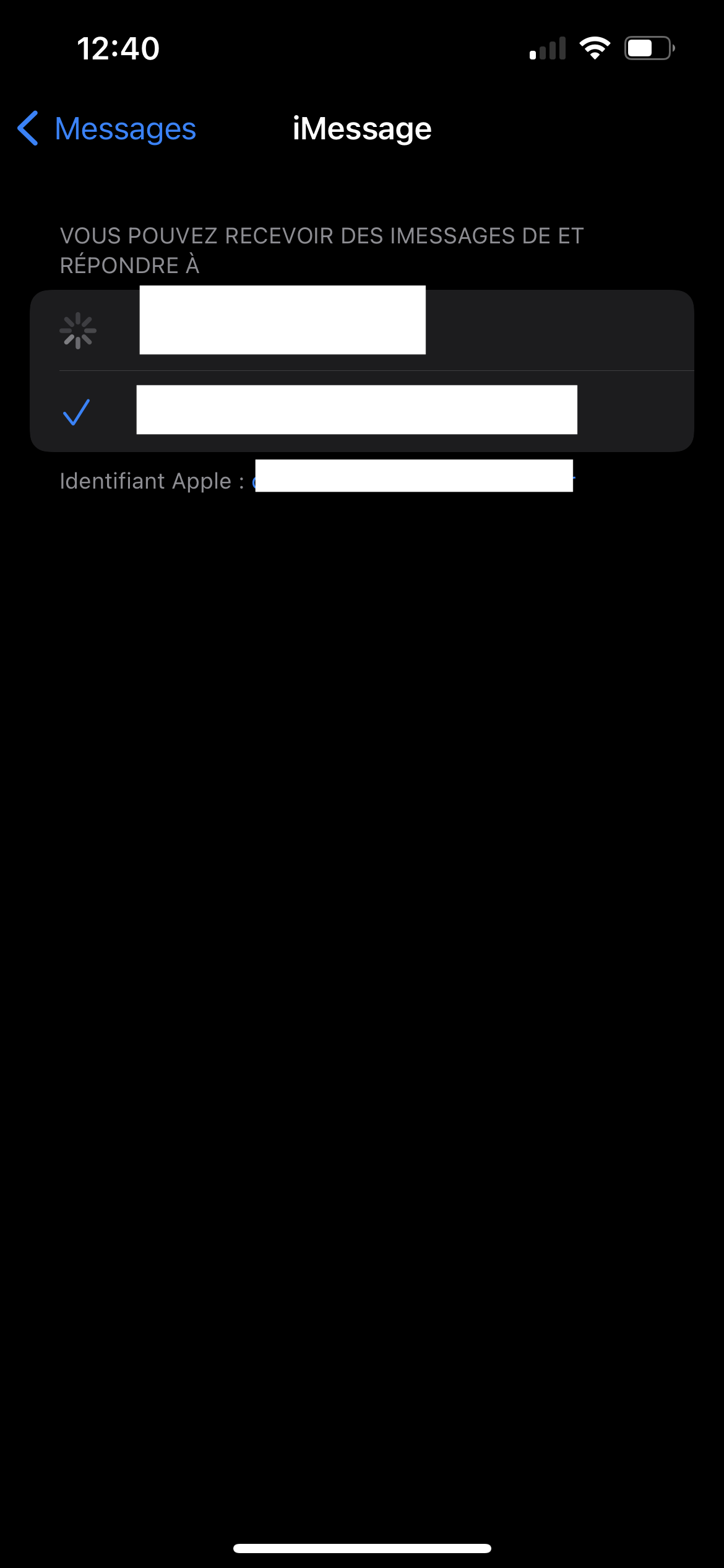 Quand je veut envoyer un iMessage ça menvoi avec mon adresse e-mail et quand je vais dans réglage iMessage je ne peut pas sélectionner mon numéro de téléphone ? Comment je dois faire ?
