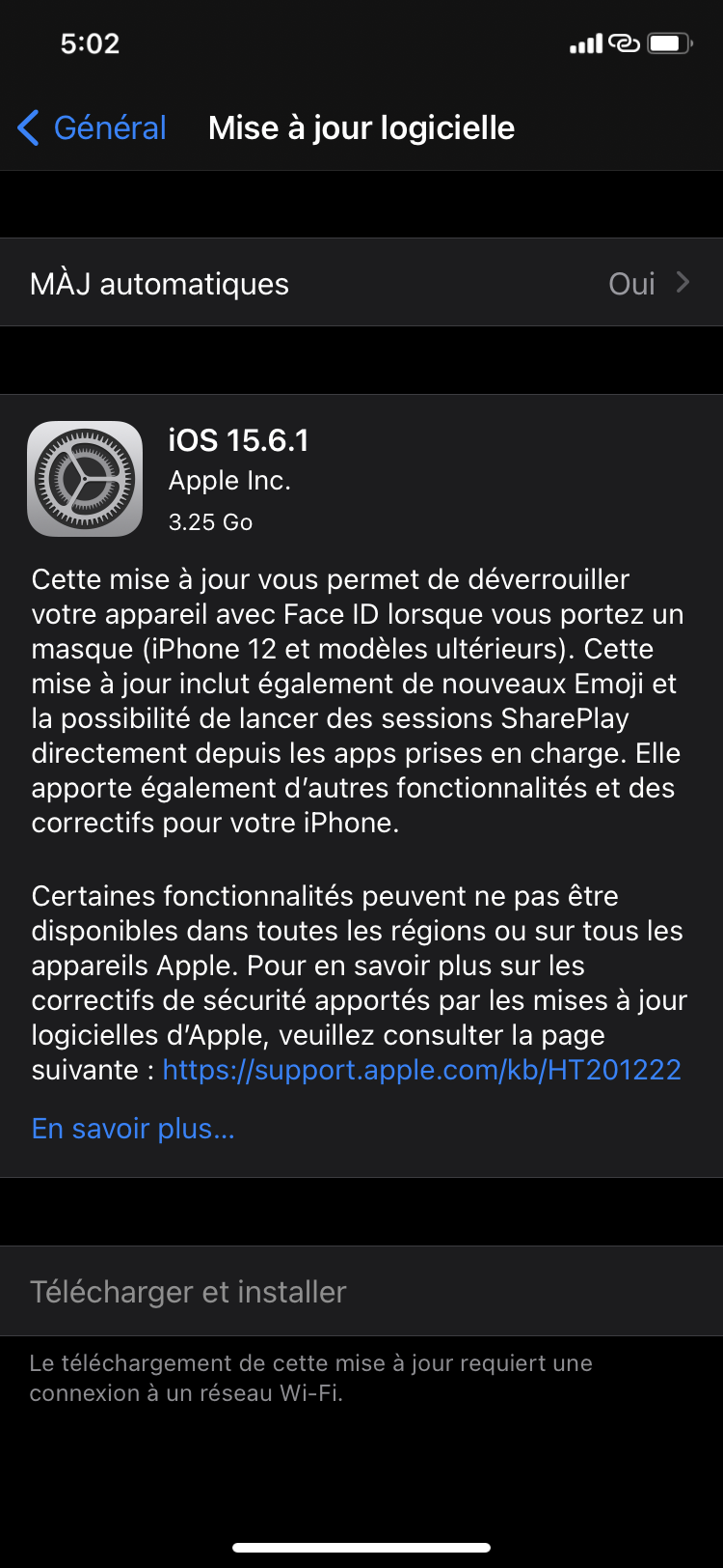 iPhone requiert connexion Wi-Fi pour mise à jour
