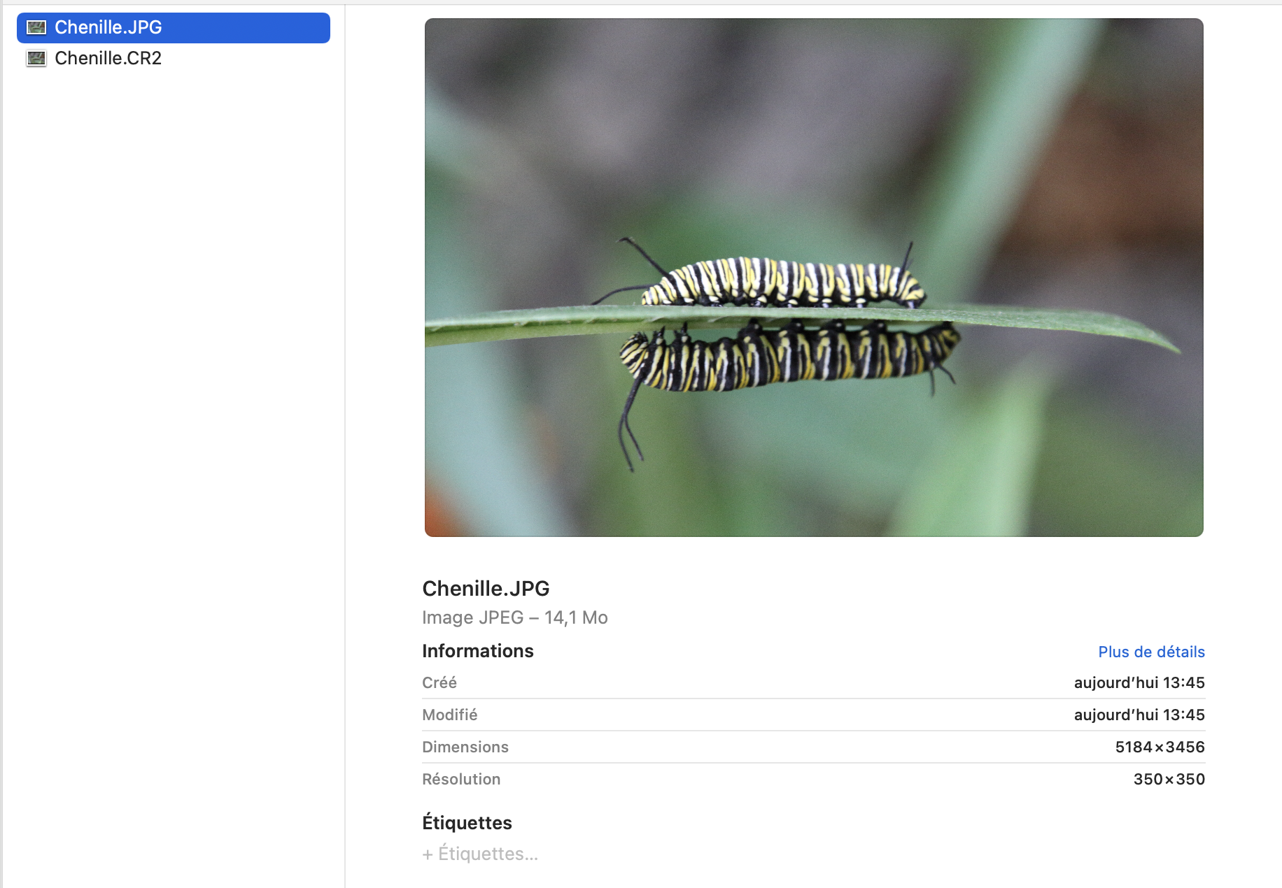 Voici les informations de l'originel (dans Finder a mode Colonnes)