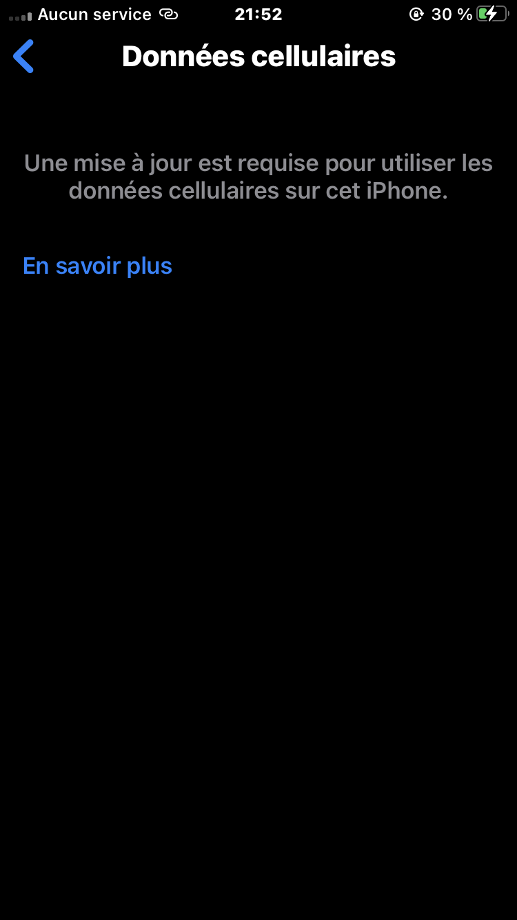 Mise à jour requise pour utiliser données cellulaires iPhone