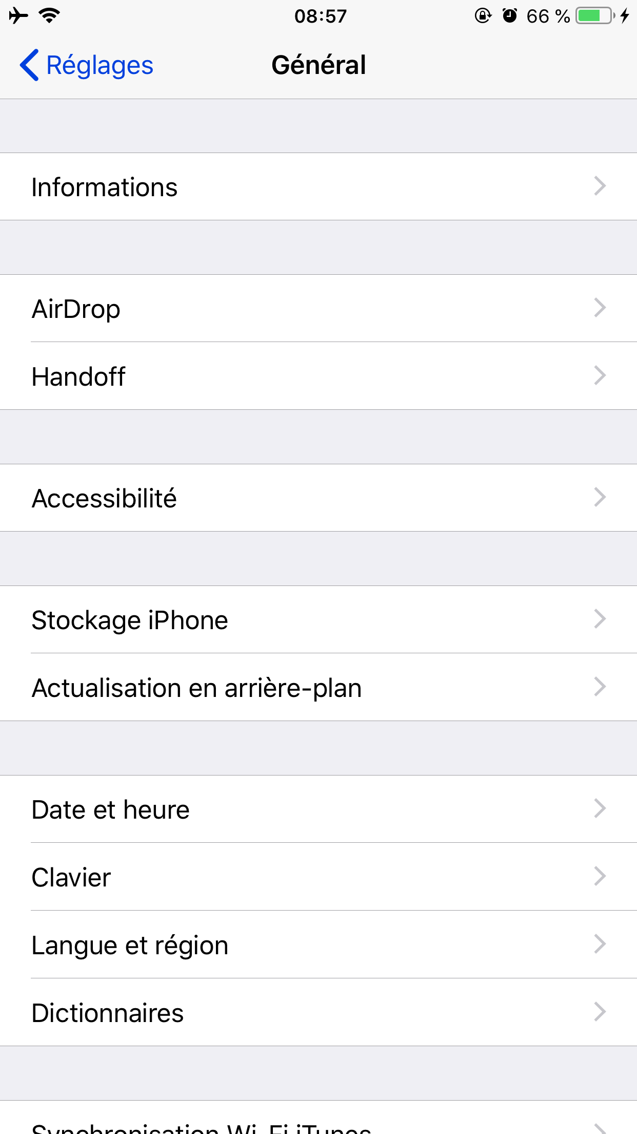 Pas d'onglet Mise à jour logicielle dans app Réglages iPhone