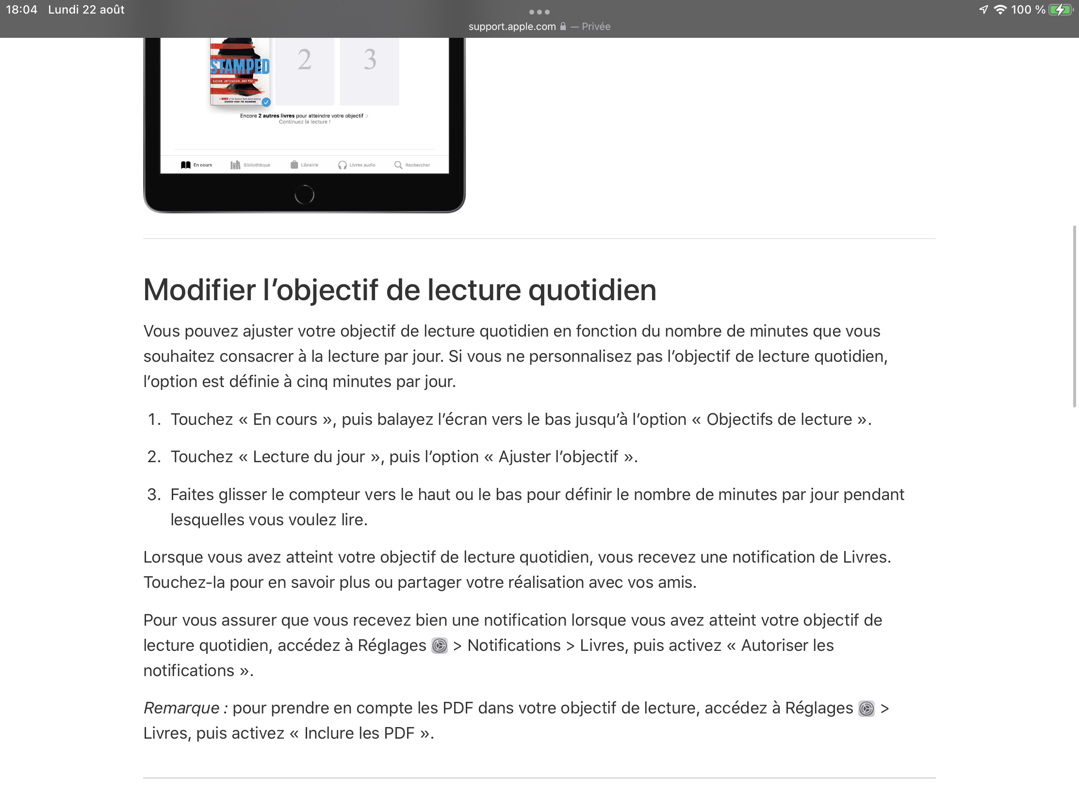 J’utilise Apple Books tous les jours et je n’ai jamais de Notification d’atteinte d’objectif.