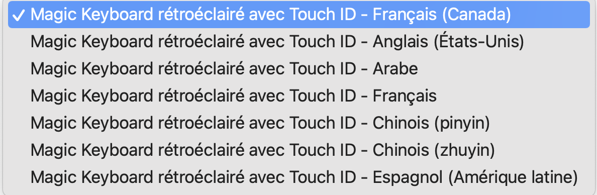 Avec un clavier QWERTY Canadien Français (mon Clavier)