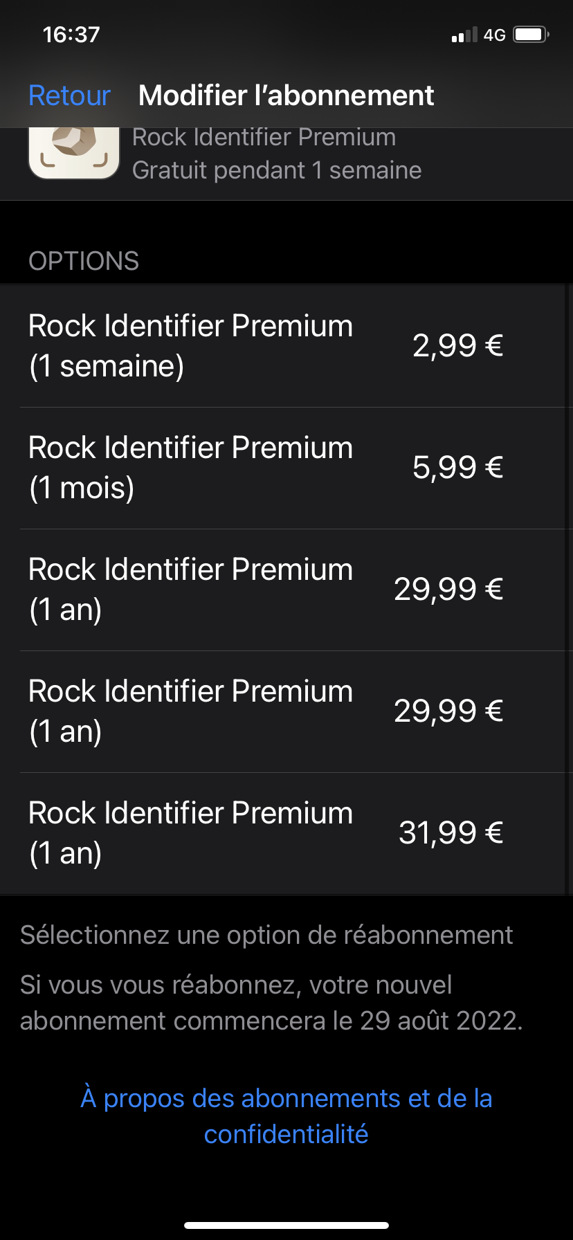 Par ailleurs si vous le souhaitez et que vous êtes encore dans la période de rétractation vous pouvez essayer de faire une demande de remboursement via le site d’Apple prévu à cet effet : Demander un remboursement pour des apps ou des contenus achetés auprès d’Apple - Assistance Apple (FR)