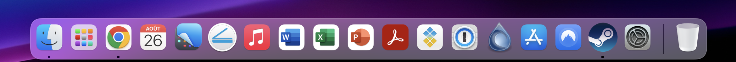 j'aurais voulu savoir s'il existait un moyen de supprimer le séparateur vertical dans mon dock entre la dernière application et la corbeille? Je n'arrive pas à faire glisser la corbeille de l'autre côté du séparateur...