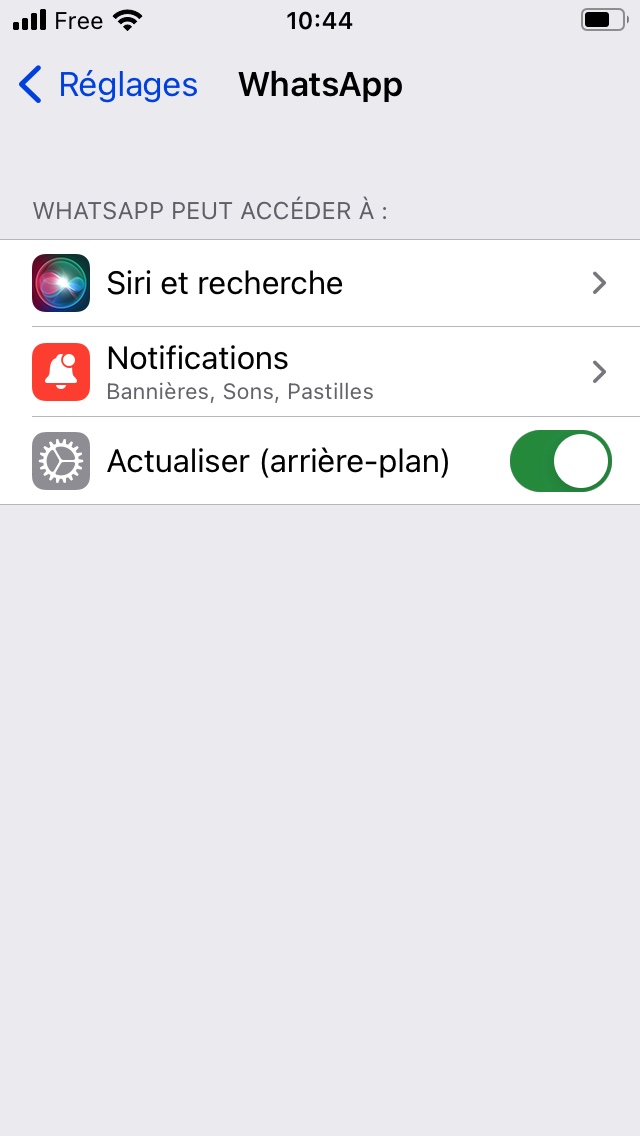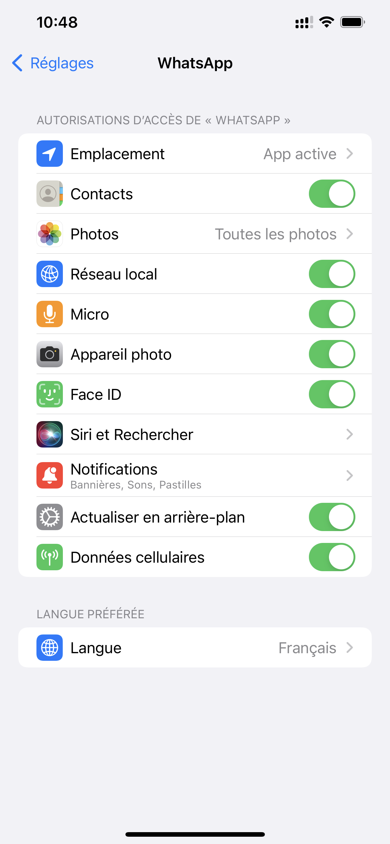 Voici ce que j’ai dans les paramètres de l’application whatsapp de ma fille: