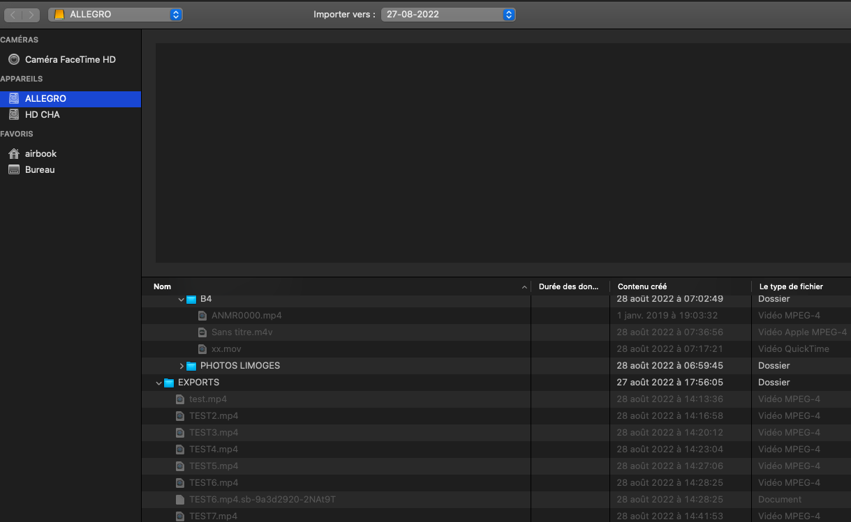 J'ai tenté une 20aine de fois de ré-importer... pareil, même avec une conversion Handbrake, même avec une exportation Quicktime.... QuickTime n'ouvre plus... Une histoire de fous