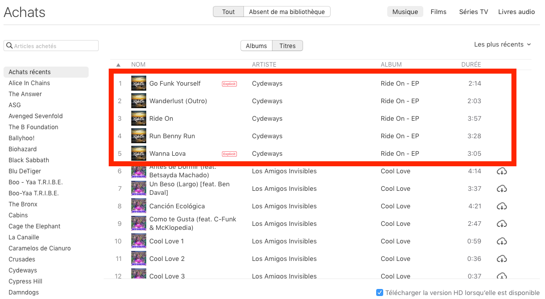 Abonné à Apple Music, je ne parviens plus à télécharger sur mon Mac (OS X El Capitan) certains de mes achats effectués sur l'ITunes store : ceux-ci n'affichent pas l'icône de téléchargement, ni aucune icône d'ailleurs. Après paiement de l'achat, c'est frustrant.