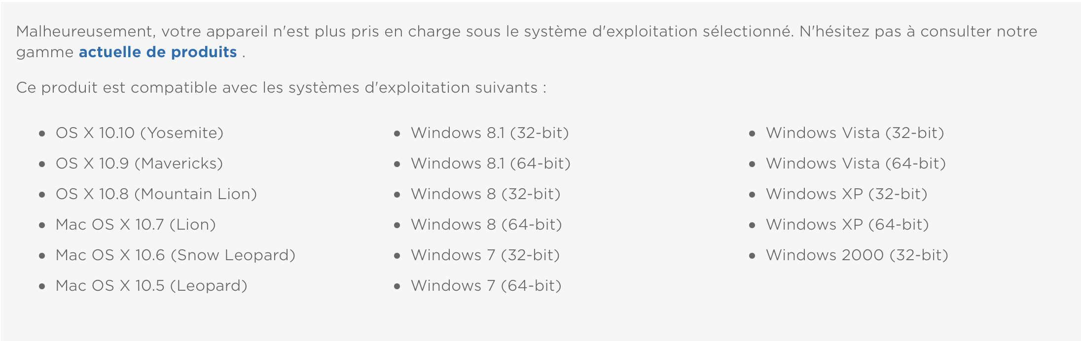 Impossible de télécharger des pilotes car ma version d'imprimante est "obsolète".