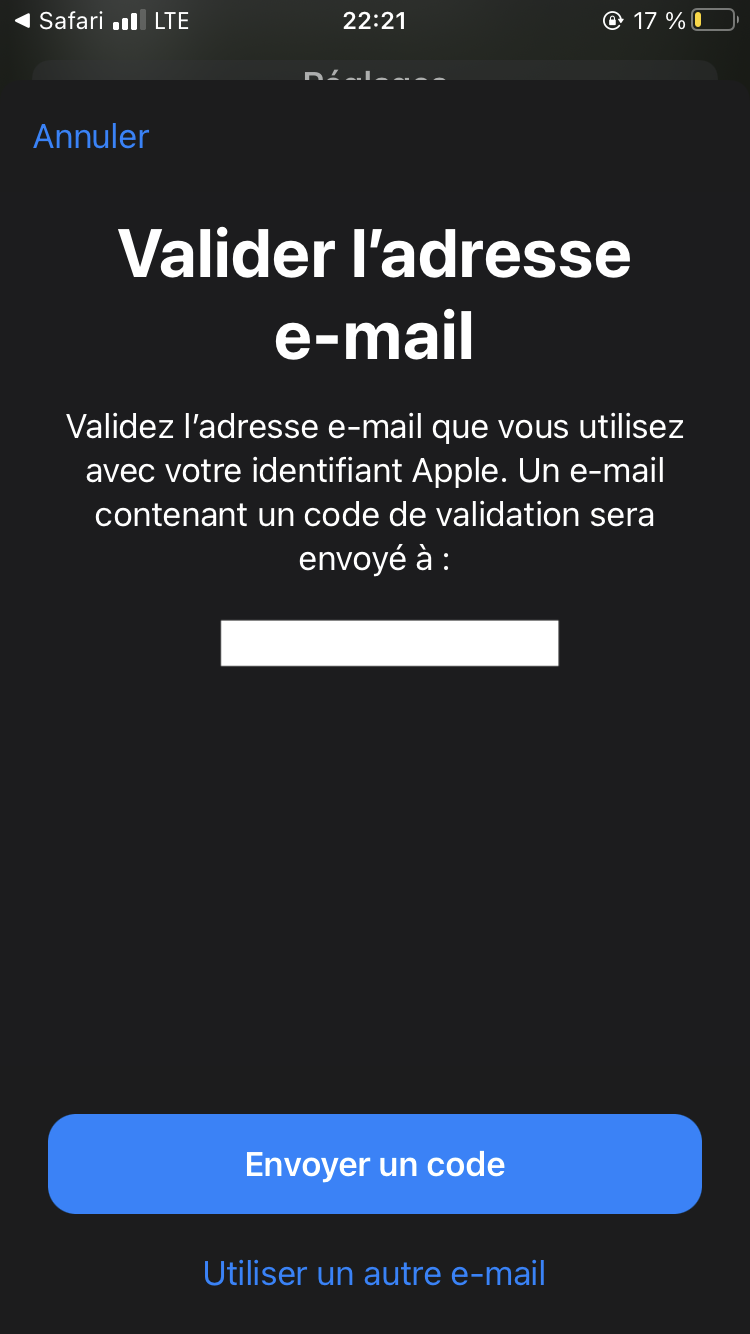 Vérifier adresse mail de l'identifiant Apple