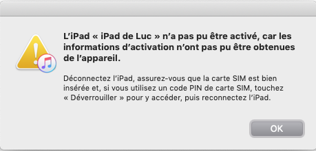 Mon iPad n'a pas pu être activé parce que "le serveur d'activation est momentanément indisponible".