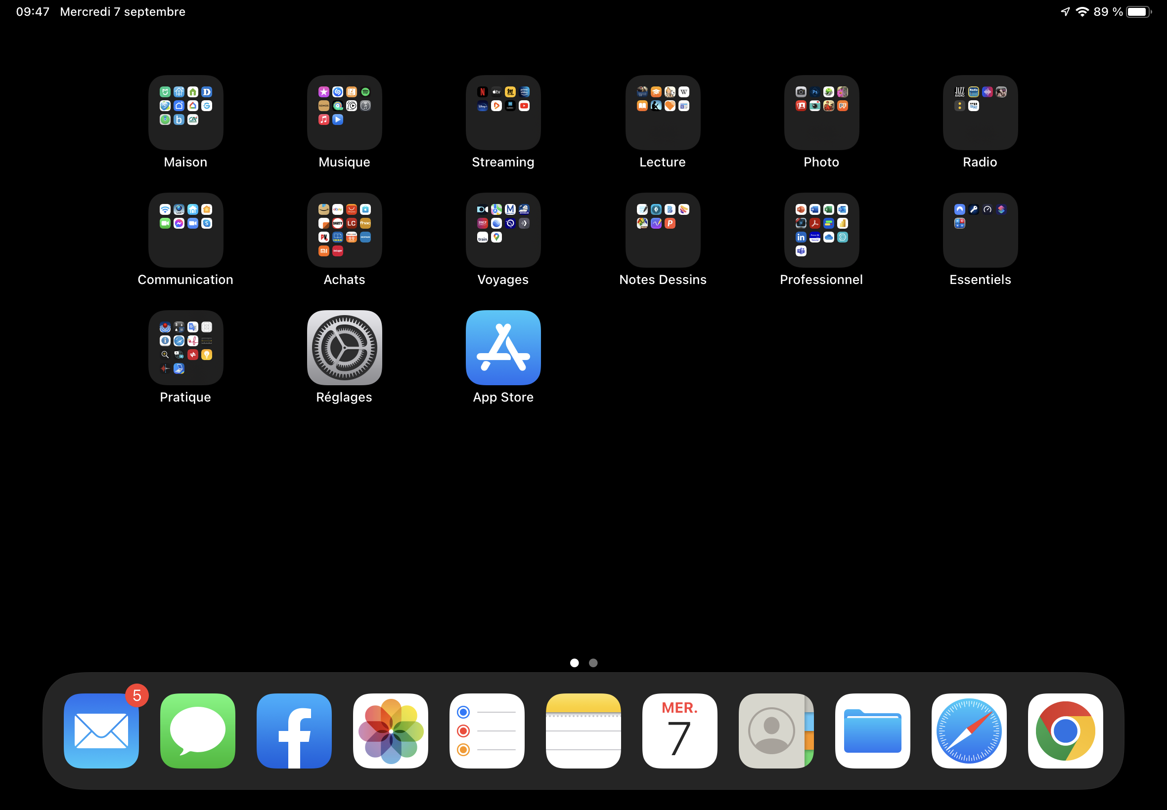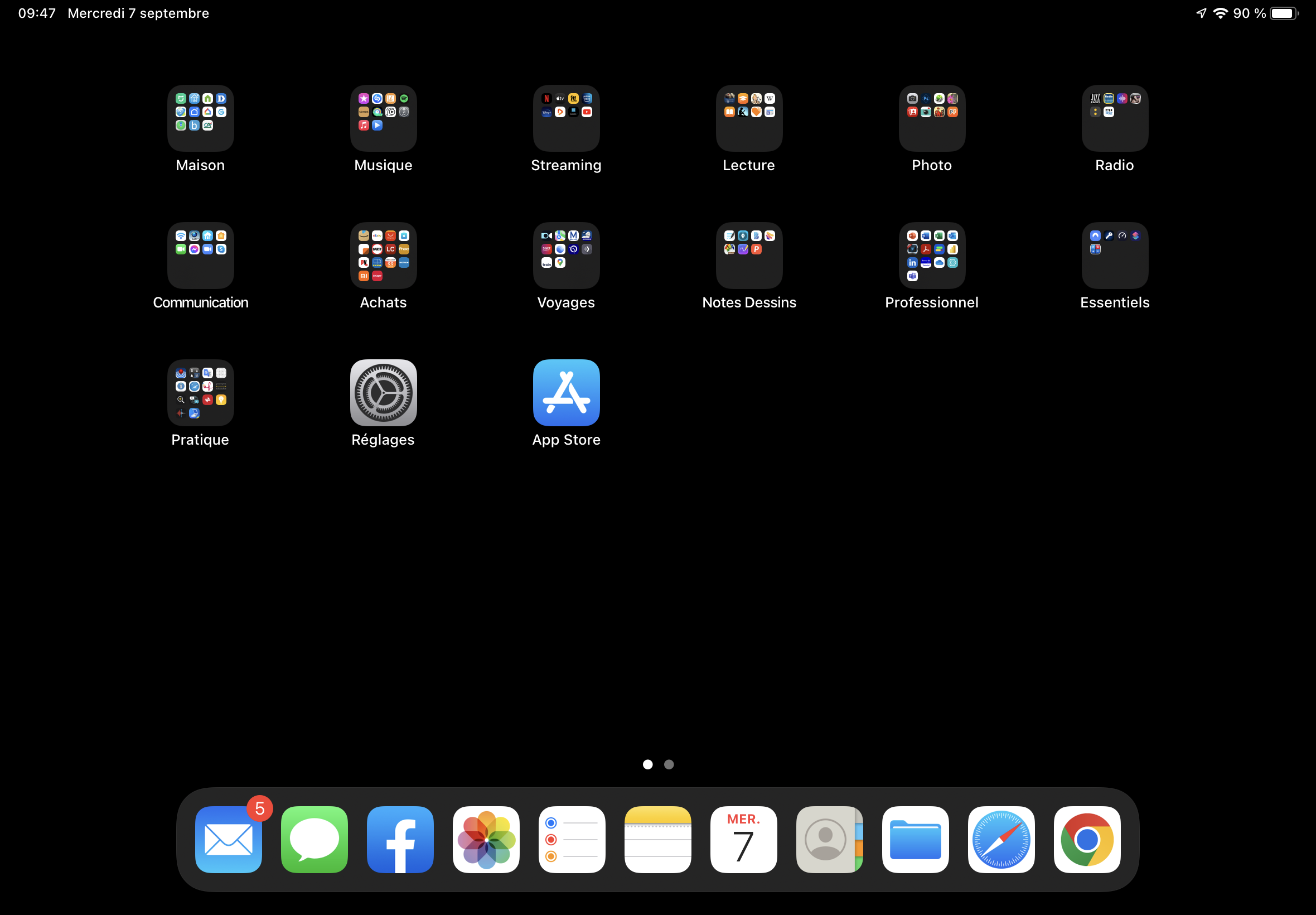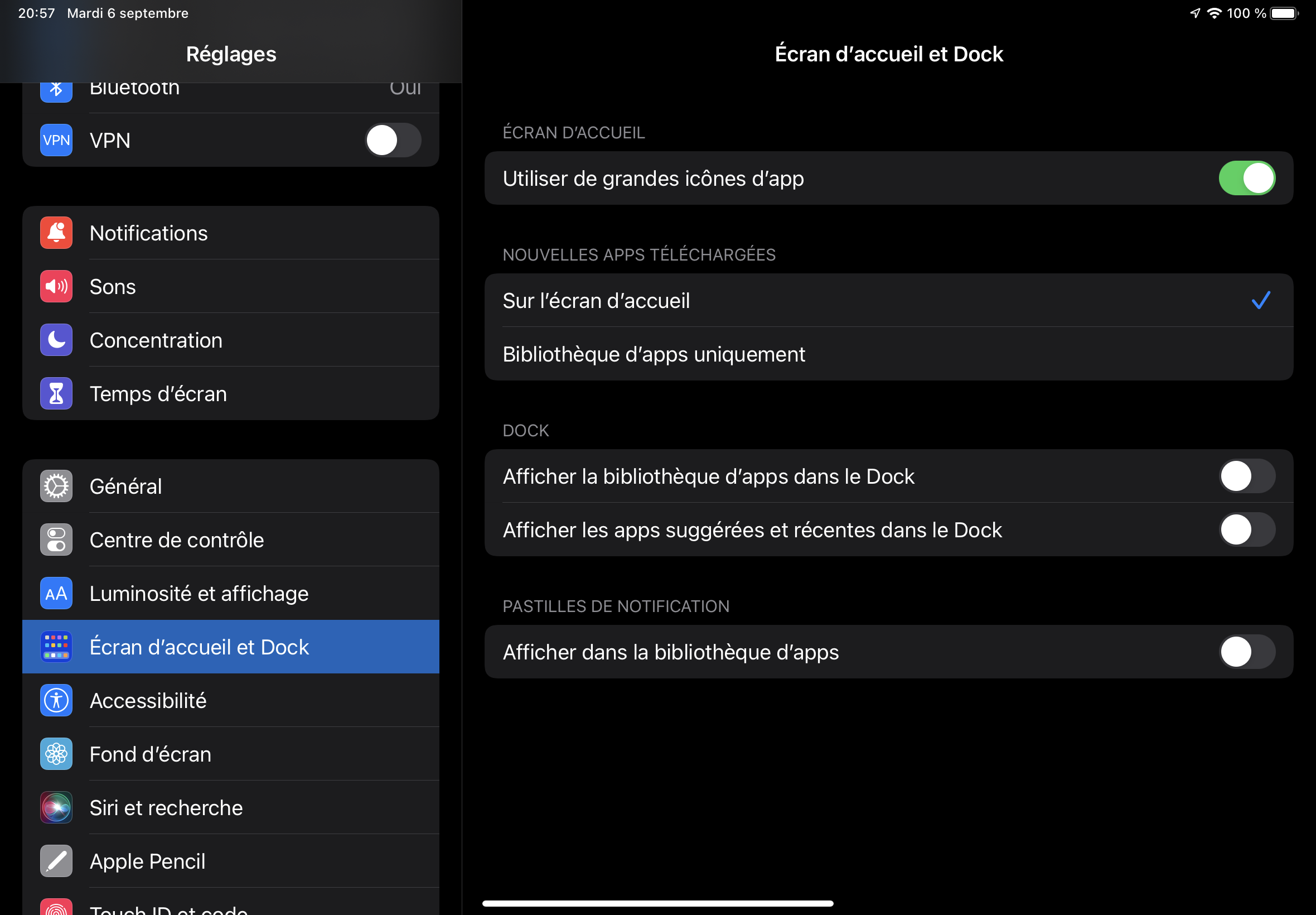 J'ai un iPad Air 5 sous iPadOS 15.6.1. Je suis "bloqué" avec un écran d'accueil à 5 x 6 petites icones. J'ai beau choisir "grandes icones" dans les réglages, ça ne change rien.