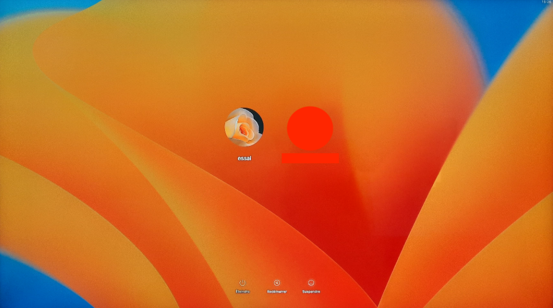 Malheureusement, cette image qui m'est imposée par le système macOS ne peut pas être changée par ONYX comme cela est prévu et qui fonctionne quand on est sur le fond d'écran de la session que l'on veut ouvrir.