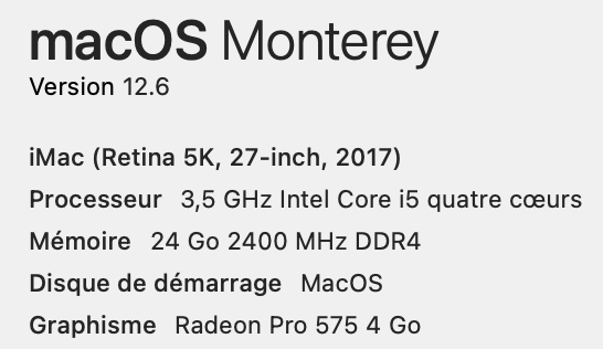 J'ai aujourd'hui un macbook pro 16 pouce avec un os Monterey.