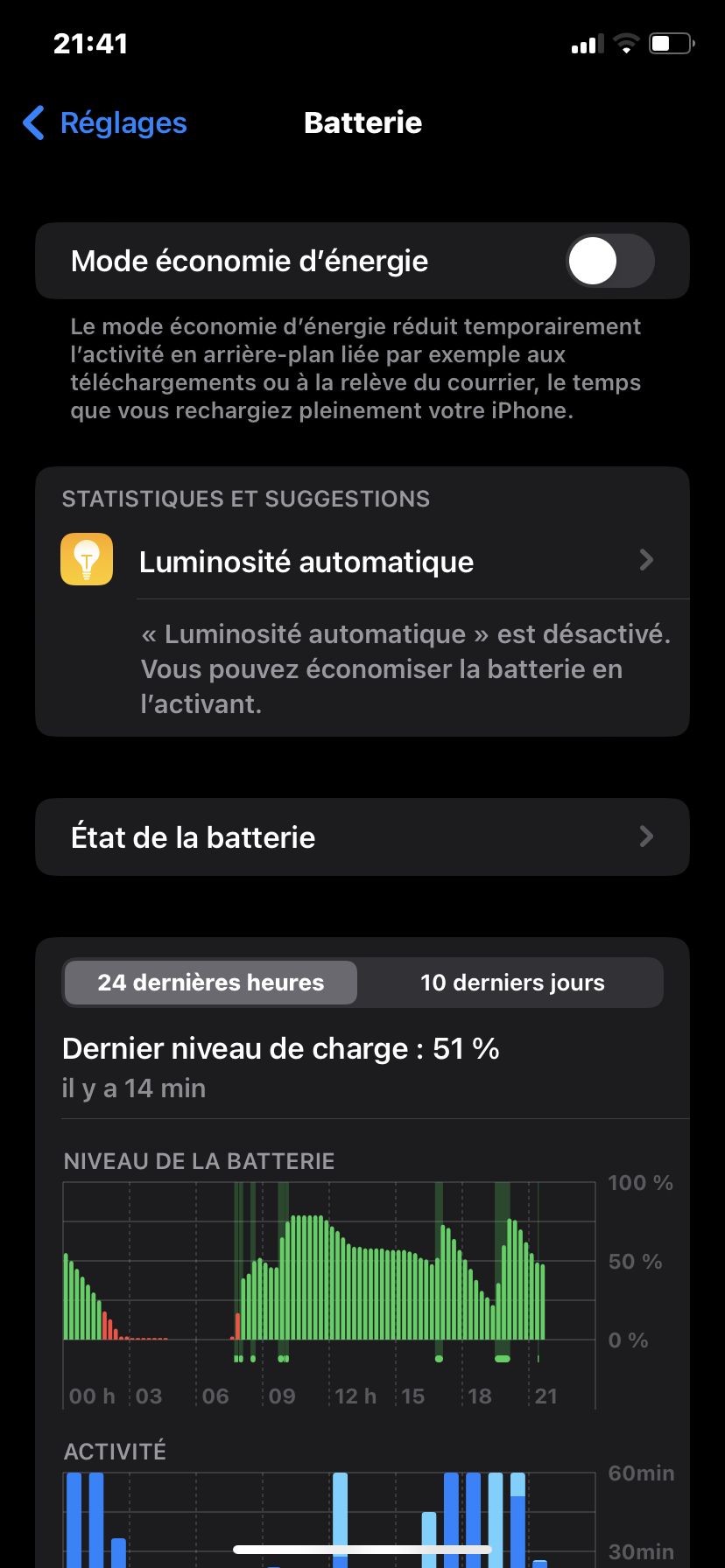 Bonjour j’ai une question concernant ma batterie de pourcentage