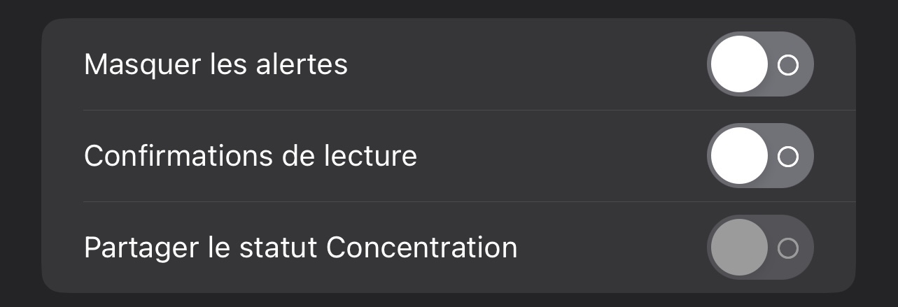 Je n’arrive pas à partager le statut de concentration dans les messages pour que mes contacts aient « les notifications de cette personne sont masquées »