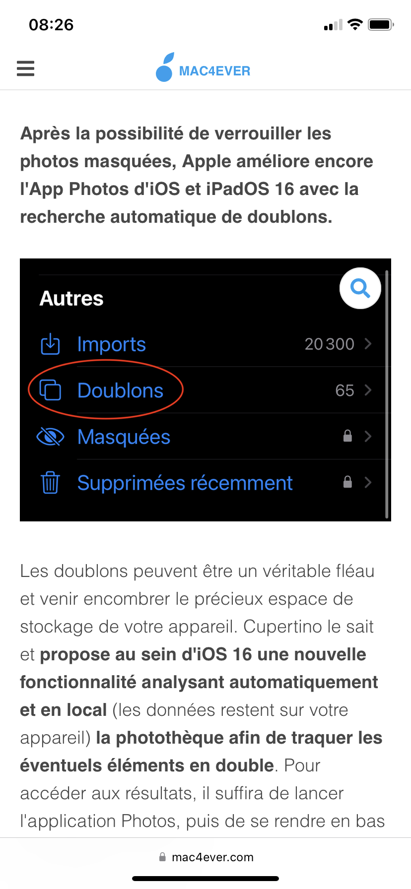 Re, effectivement l'album Doublons ne s'affiche pas, l'iOS 16 vient à peine de sortir et j'ai peu d'information sur le sujet, cependant voici ce que l'on peut lire actuellement :