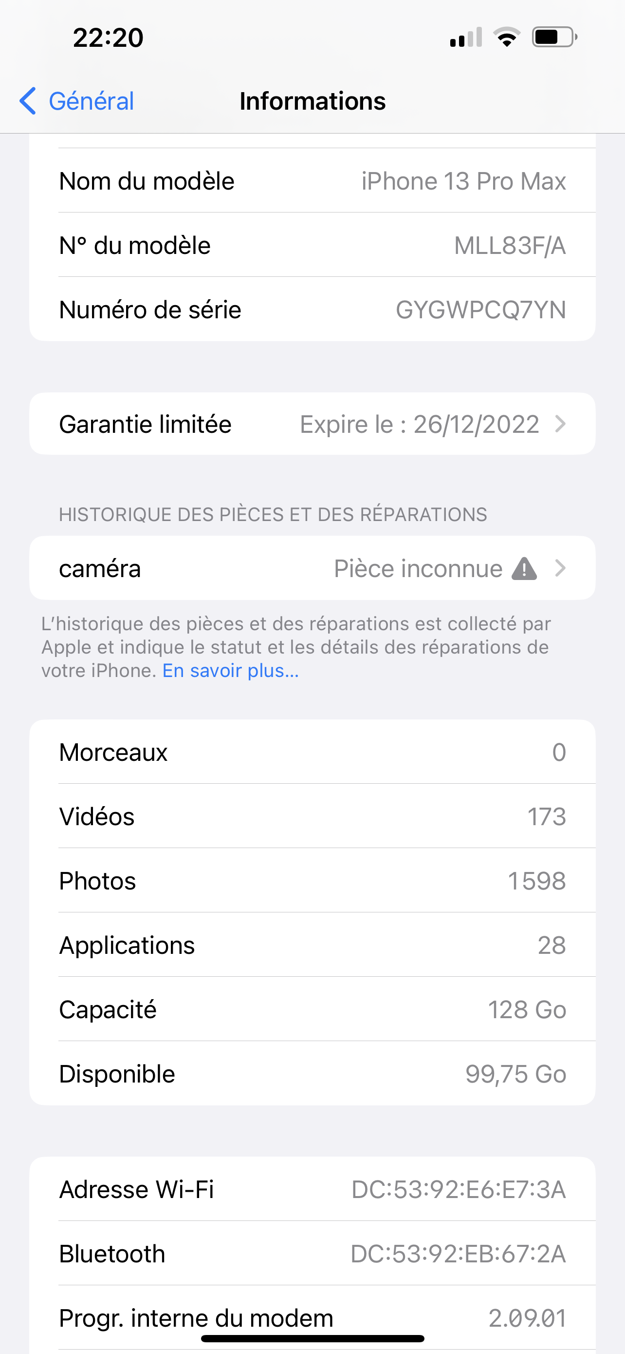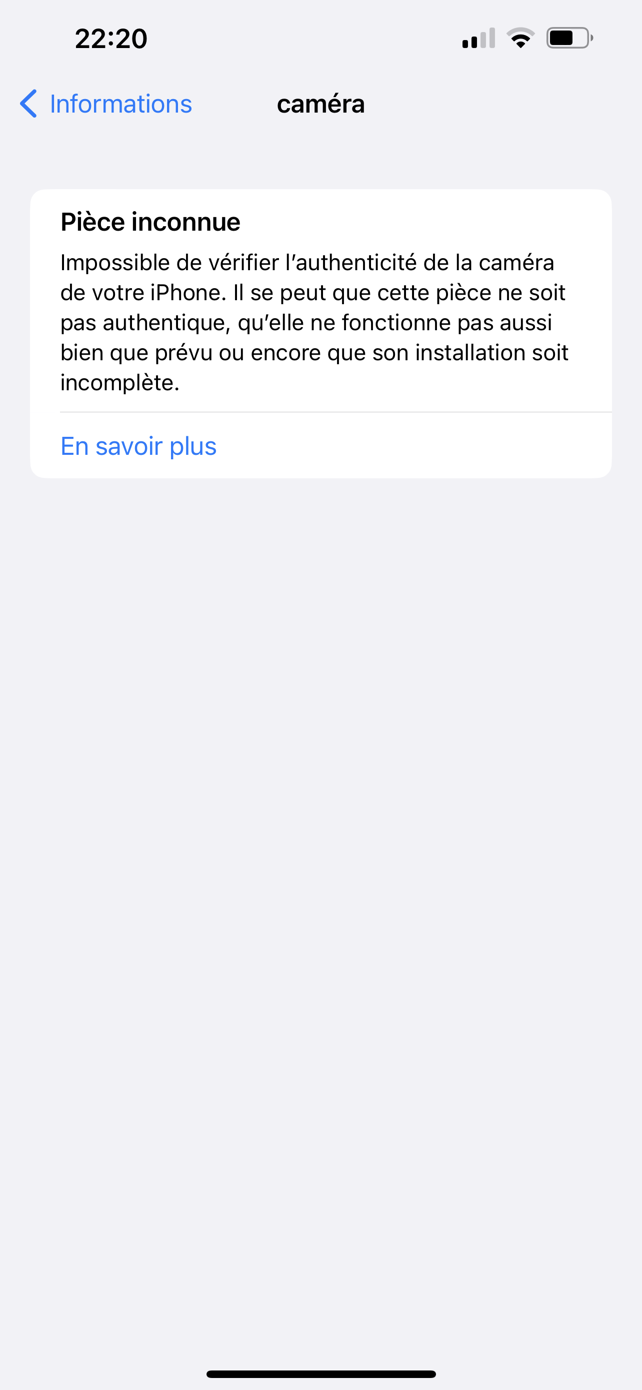 J’ai un problème avec la caméra de ma caméra ça me dit pièce inconnu