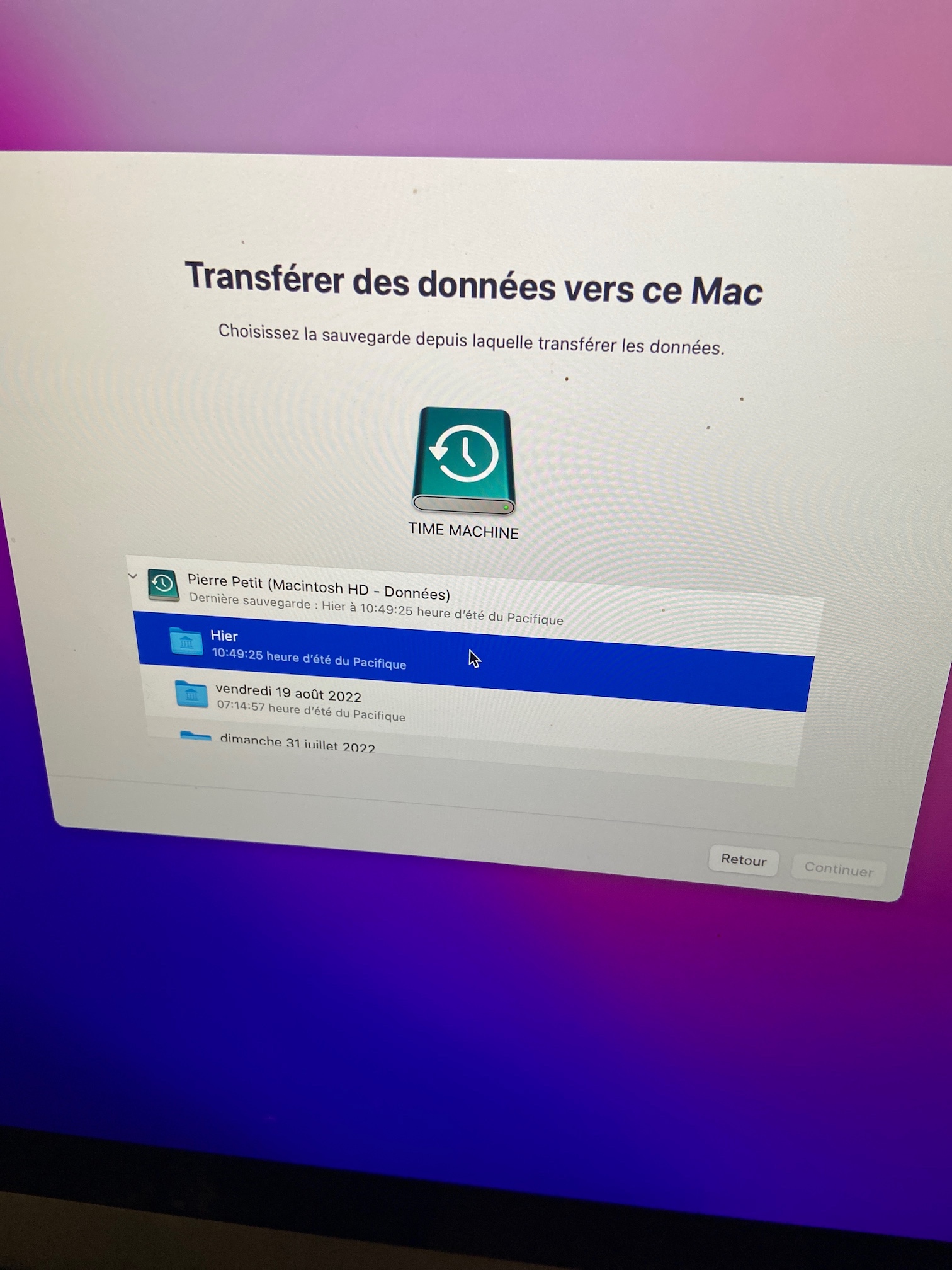 Mon mac reste bloqué sur l’étape de sélection de la sauvegarde Time Machine