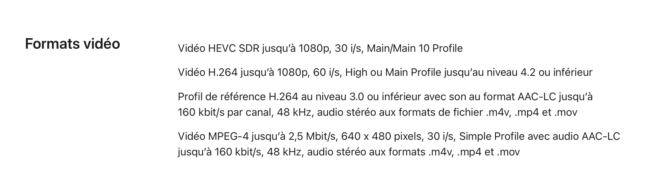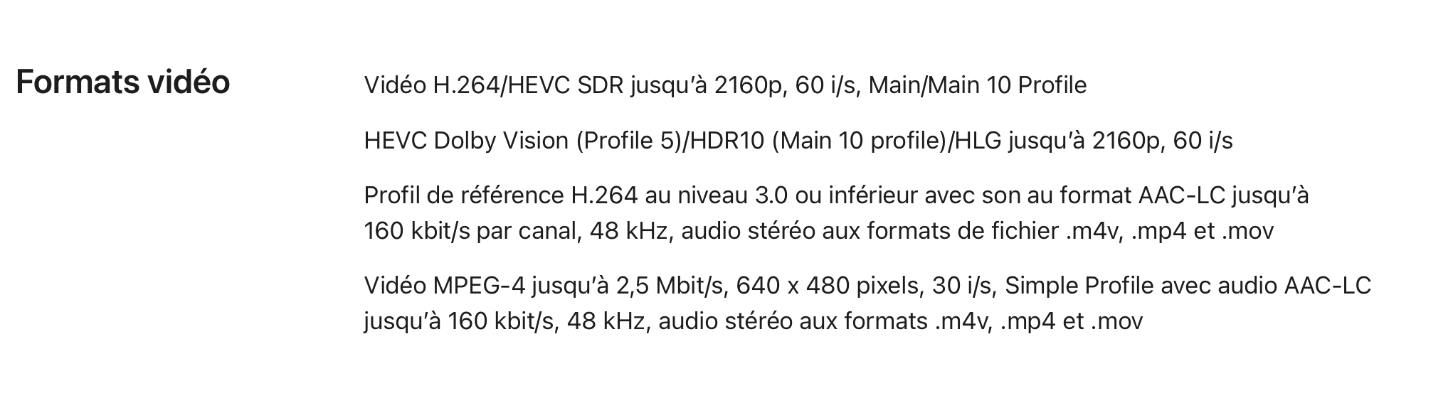 Par exemple, les formats 4K ne sont gérés que par l'Apple TV 4K et il faut que le téléviseur le supporte aussi, les autres modèles n'étant pas compatibles.