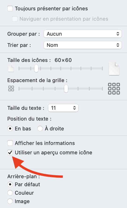 petit problème avec l'aperçu des icônes qui ne fonctionne pas en JPEG j'ai donc formaté et remis higt Sierra et cela avec un disque de sauvegarde puis refait plusieurs fois l'expérience sous différentes angles cela persiste toujours je n'ai toujours pas d'image dans mes icônes j'ai beau cocher la case dans l'option ainsi que fermer et rouvrir le Finder j'essaie d'autres logiciels mais impossible impossible qu'il soit avec dans cette icone