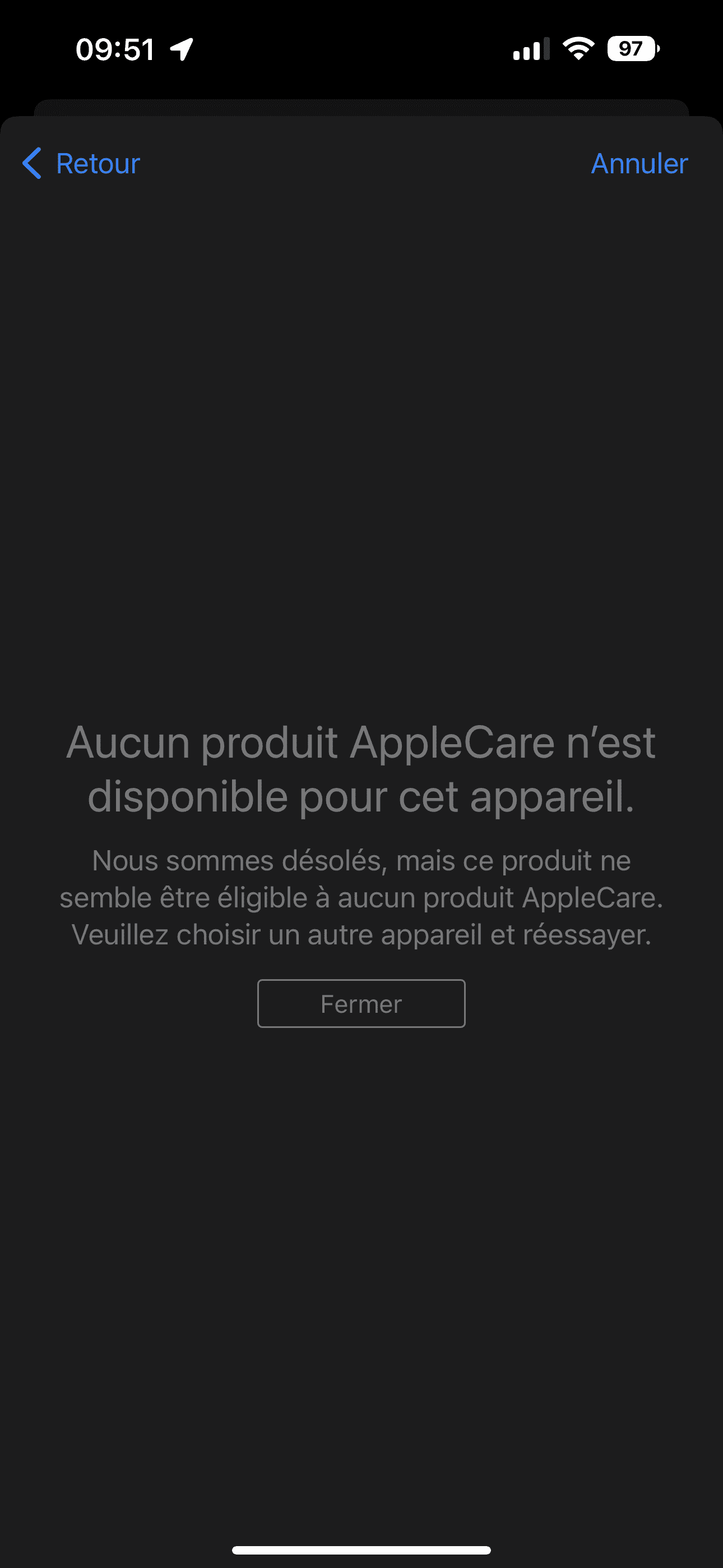 Je viens d’acquérir un iPhone 14 Pro Max et j'ai souscrit un Apple Care+. J'ai bien reçu le mail me confirmant ma ccouverture, mais lorsque je vais dans les réglages de l'iphone, je ne vois pas cette couverture, je vois cela :