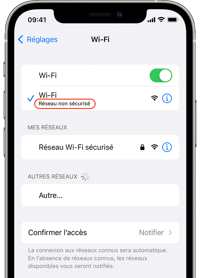 Cette page pourrait vous être utile Impossible de se connecter à un réseau Wi-Fi sur un iPhone, iPad ou iPod touch - Assistance Apple (FR)