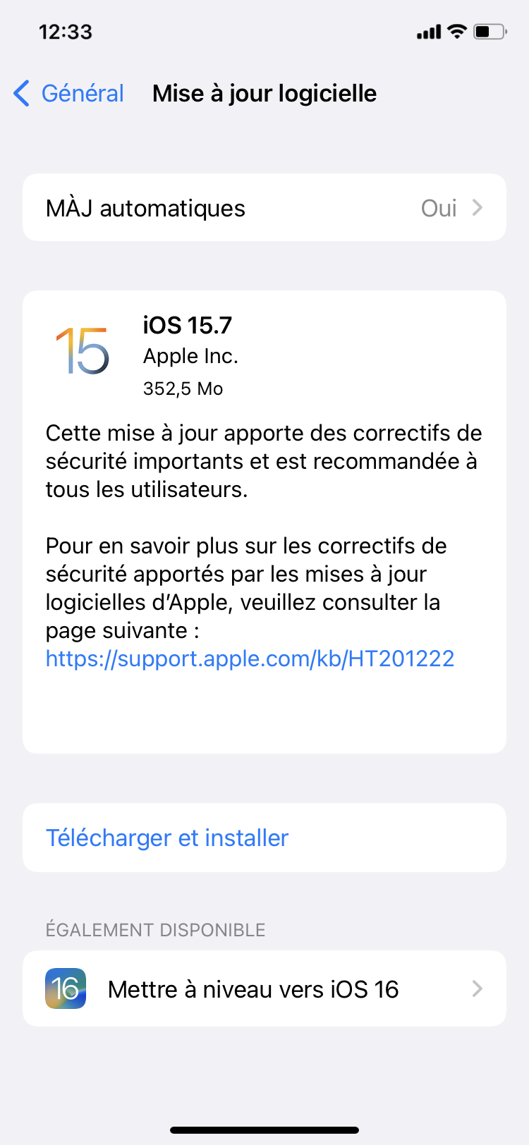 J’ai trouvé un problème au niveau de la l’installation de iOS 15,7
