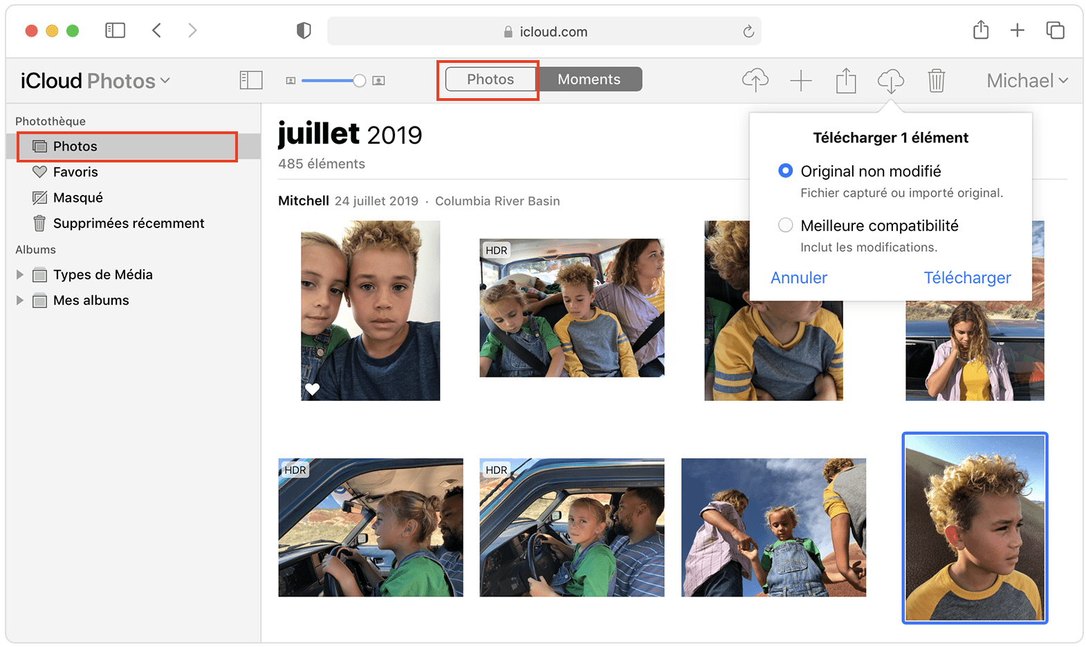 Si vous utilisez Photos iCloud, toute la photothèque et les albums sont synchronisés sur iCloud.